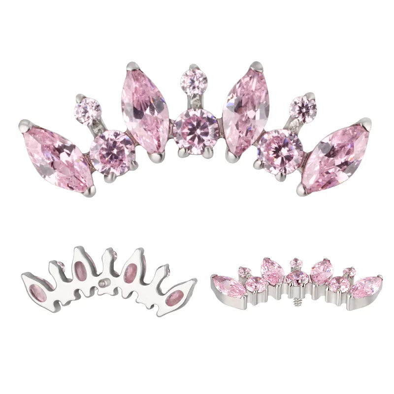 Implantaadikvaliteediga titaanist augustusese, millel on ümmargune ja marquise-kristallide paigutus, loodud täpsuse, tasakaalu ja professionaalse kehavajutuse jaoks.
