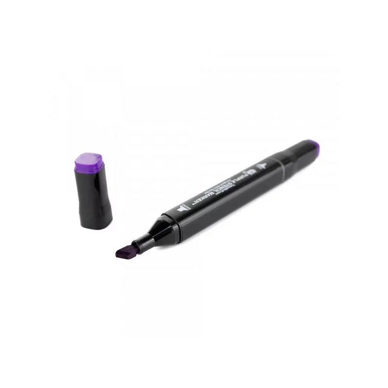 Markeril on kaheotsaline disain: peen ots täpsete detailide ja õrna visandamise jaoks ning lai ots suuremate alade kiireks täitmiseks sujuvate, selgete joontega.