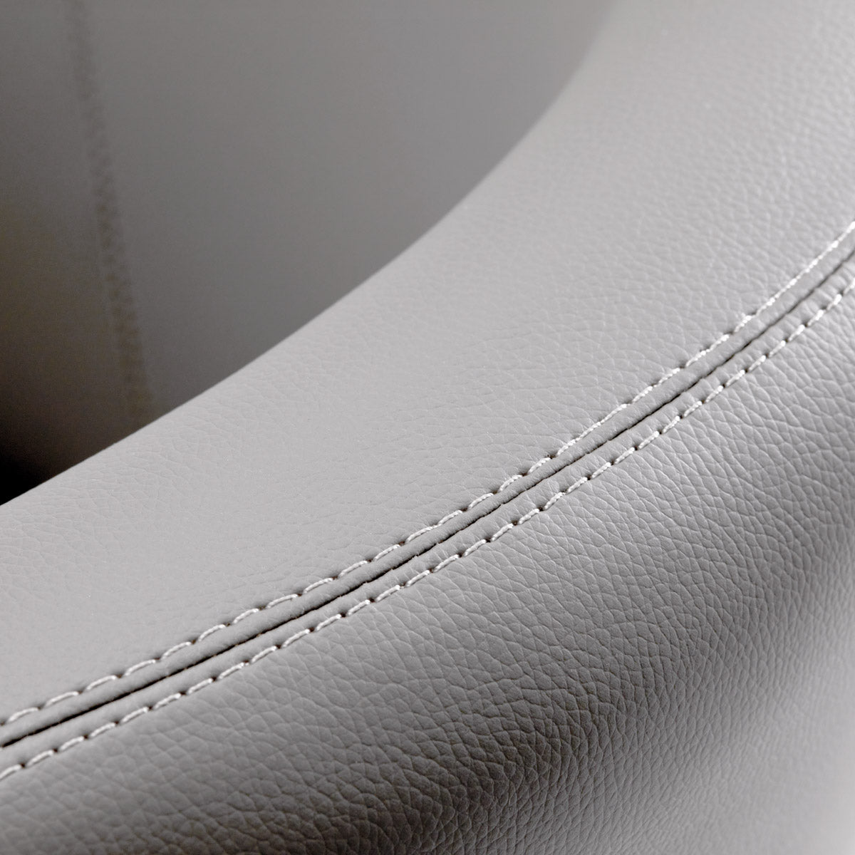 Tool on täidetud vahuga, mis on vastupidav ja ei deformeeru, tagades pikaajalise mugava kasutamise. Polsterdus on valmistatud mõnusast puudutusele imitatsioonnahast spetsiifilise struktuuriga. Tänu sellise materjali kasutamisele on varustus niiskuskindel, vastupidav ja lihtsasti puhastatav. Halli toonides kate ja hõbedastes toonides dekoratiivsed elemendid annavad sellele ajatu elegantsi. Selle iseloomulik klassikaline viimistlus sobib suurepäraselt peaaegu igasse ruumi.