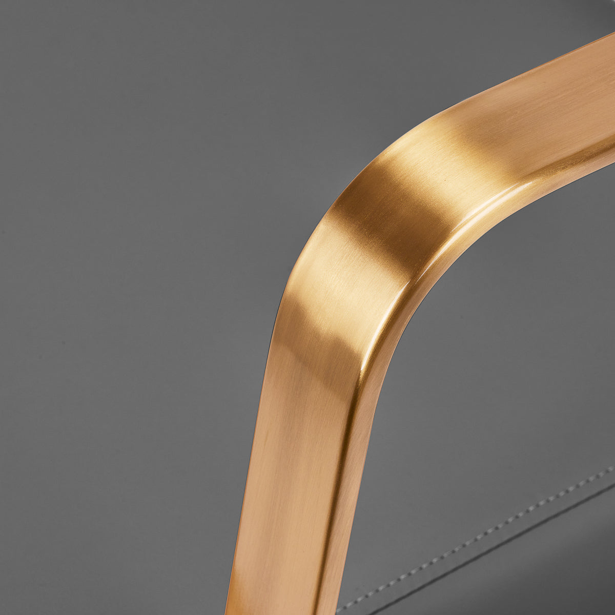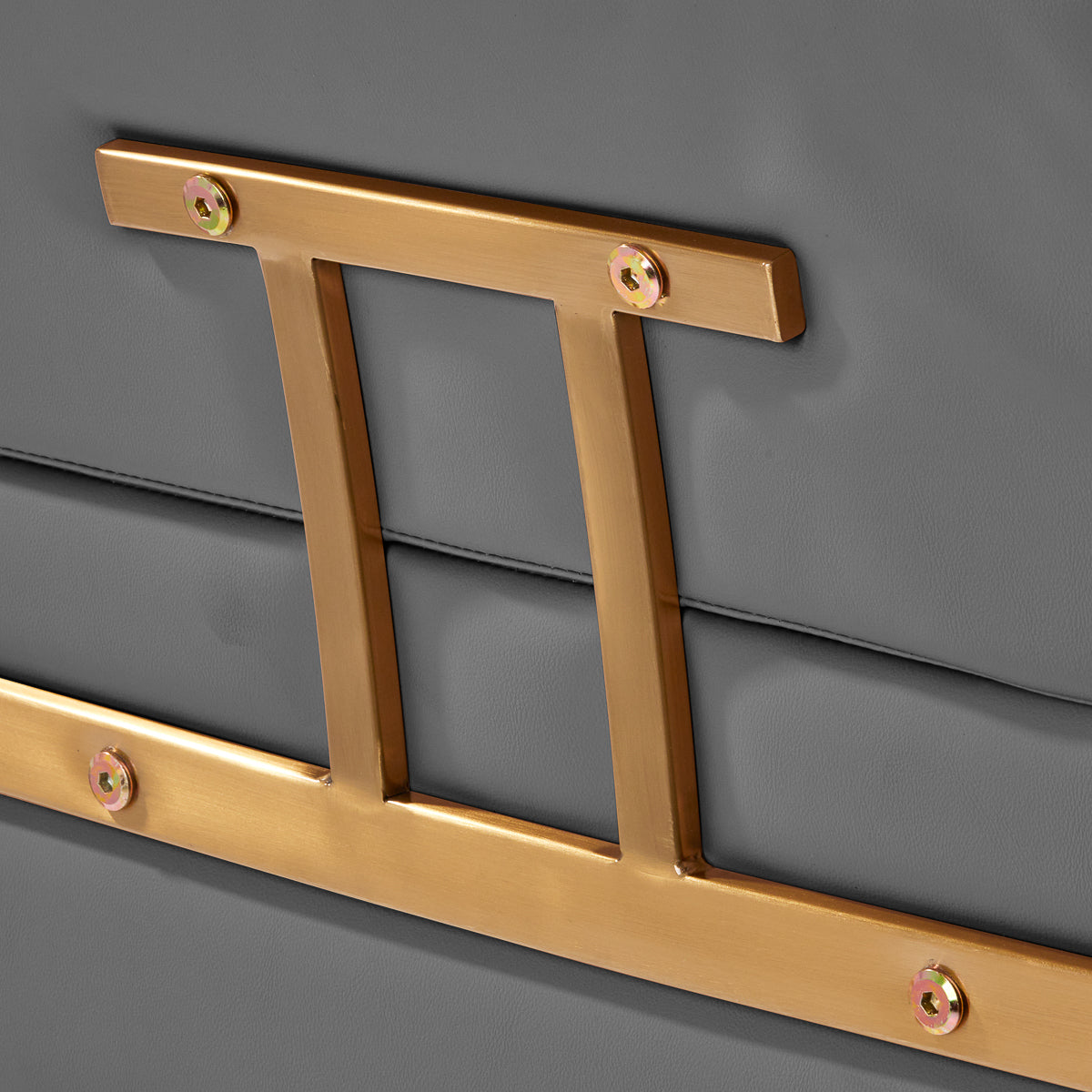 Tooli täisringi pöördemehhanism muudab juuksuri töö efektiivsemaks ja mugavamaks. Tugev, lame, ruudukujuline alus tagab stabiilsuse kasutamise ajal. Mattviimistlusega sile pind annab elemendile elegantse välimuse ja muudab selle lihtsaks puhastada. Mugav vahtpolstriga iste tagab kõrge kasutusmugavuse, isegi paljude tundide pikkuste protseduuride ajal. Geomeetrilised, metallist käetoed kuldsetes toonides võimaldavad korrektset kliendi õlgade asendit – see tähendab, et ta ei suru pead õlgade vahele ega küüruta – mis muudab täpsete protseduuride, sealhulgas juukselõikuste tegemise palju lihtsamaks. Selle mudeli stiilne jalatugi pakub kasutaja jalgadele stabiilset tuge.