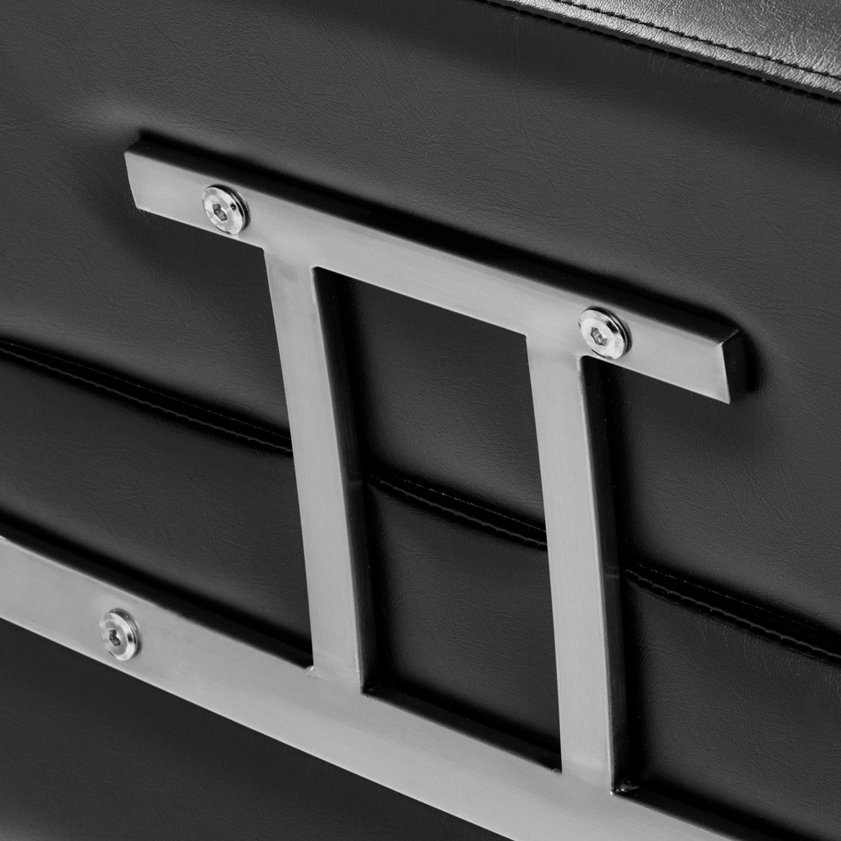 Vastupidavast, deformeerumiskindlast vahust täidis ja meeldiva puudutusega sünteetilisest nahast polsterdus tagavad mööbli vastupidavuse ja mugava kasutamise pikaks ajaks. See muudab varustuse ka niiskuskindlaks, vastupidavaks ja lihtsasti puhastatavaks. Must kate annab sellele ainulaadse iseloomu. Varustus paistab silma kaasaegse disainiga, mis teeb tugitooli suurepäraseks paljudes professionaalsetes salongides.