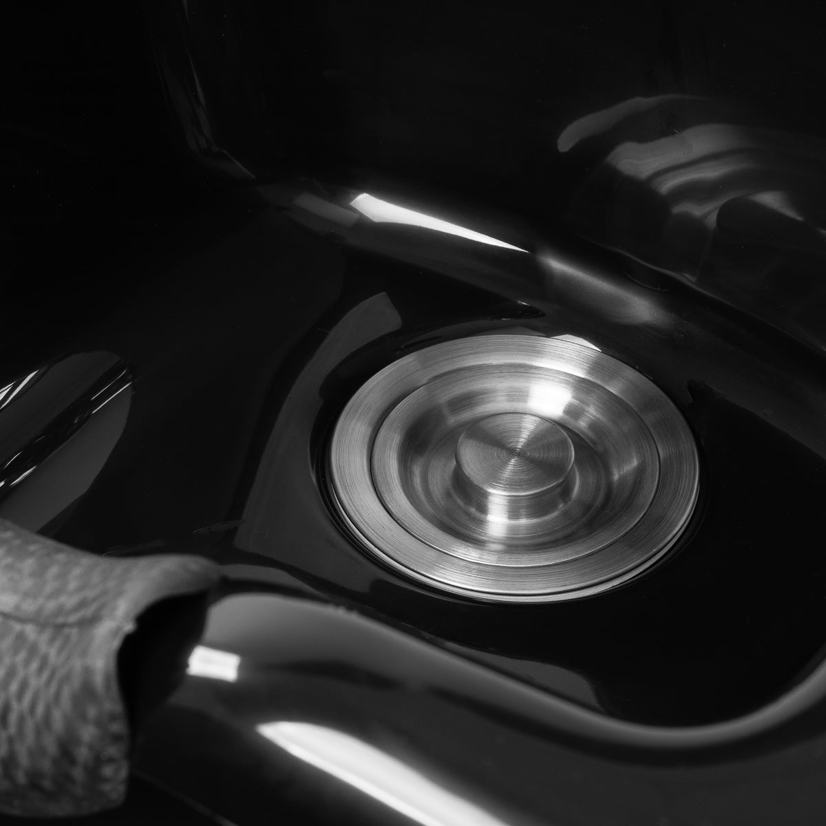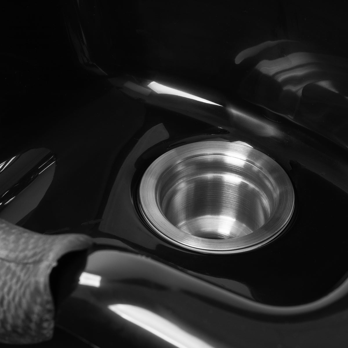 Sügav must kauss on valmistatud vastupidavast plastikust, mis teeb selle kahjustuskindlaks ja lihtsasti puhastatavaks. Selle läbimõeldud disain vähendab tõhusalt vee ja pesuvahendite pritsimist pesemise ajal. Ergonoomiline kuju ja profiilne kaelus silikoonkattega tagavad kliendi pea mugava asendi. Praktiline koht duššiotsikule aitab paremini organiseerida jaama ning pistik koos sõelaga lihtsustab vee voolu kontrolli ning hoiab puhtust ja hügieeni.