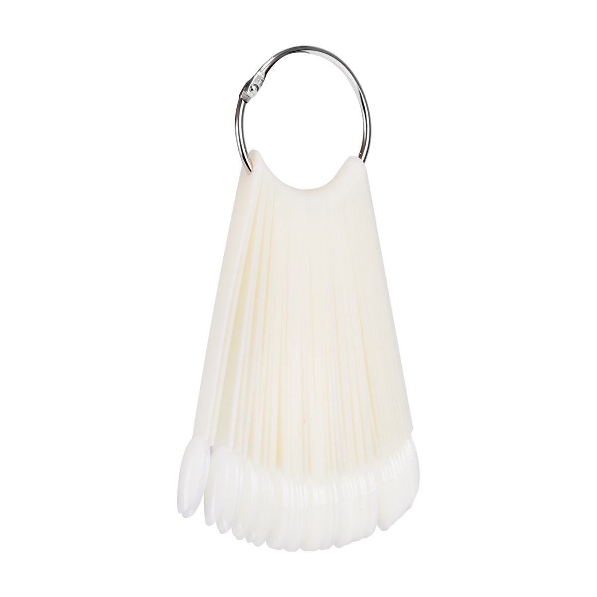 Küüne šabloon piimjas värvitoonis võimaldab esteetiliselt esitleda kõiki klassikaliste ja hübriidlakide või geelide värve. See koosneb 50 üksikust ovaalse kujuga küünetipist, mille suurus vastab tõelistele küüntele. See kinnitatakse praktilise, eemaldatava rattaga, mis teeb kogu asja lihtsaks hoiustamiseks. Iga küünetipp on valmistatud vastupidavast plastikust.