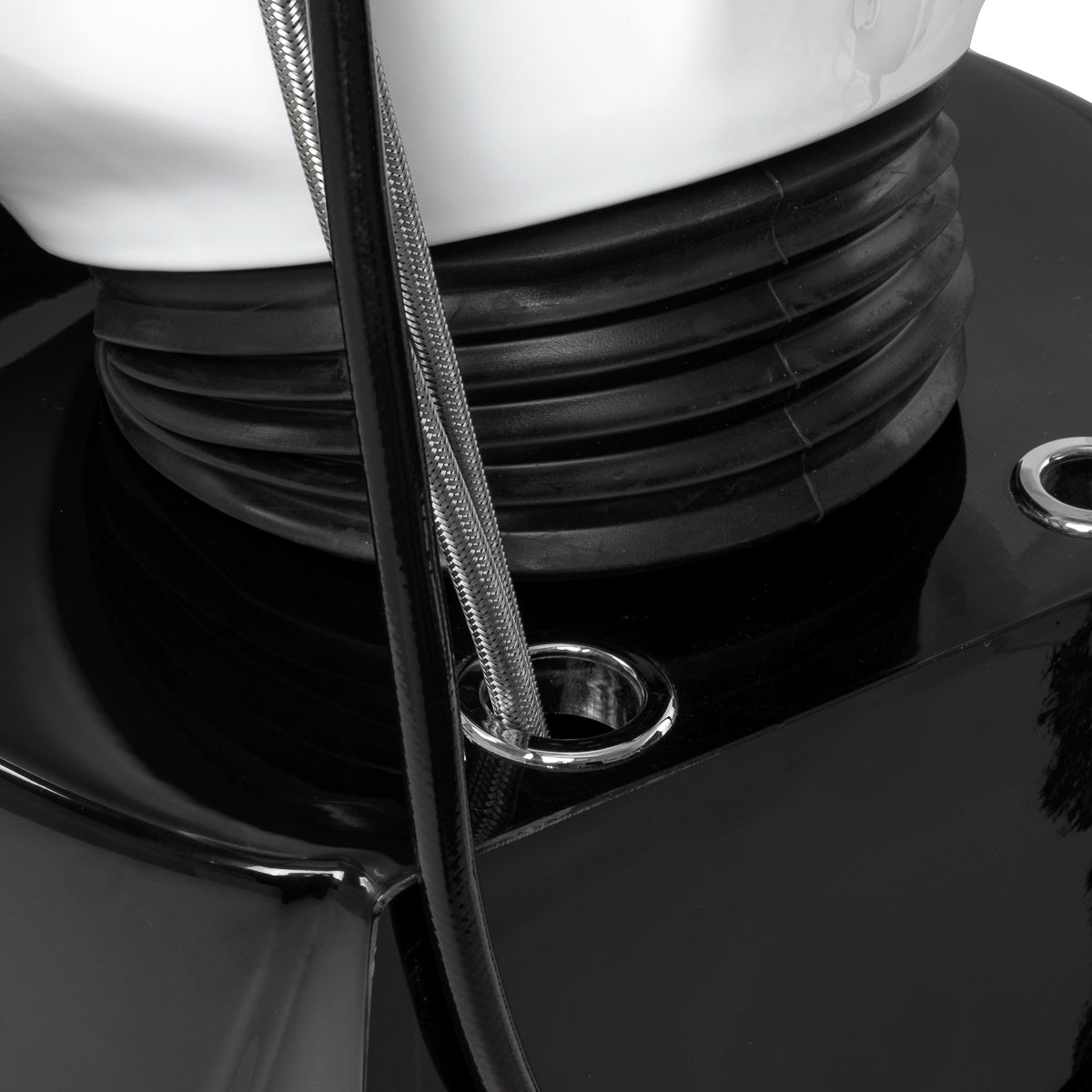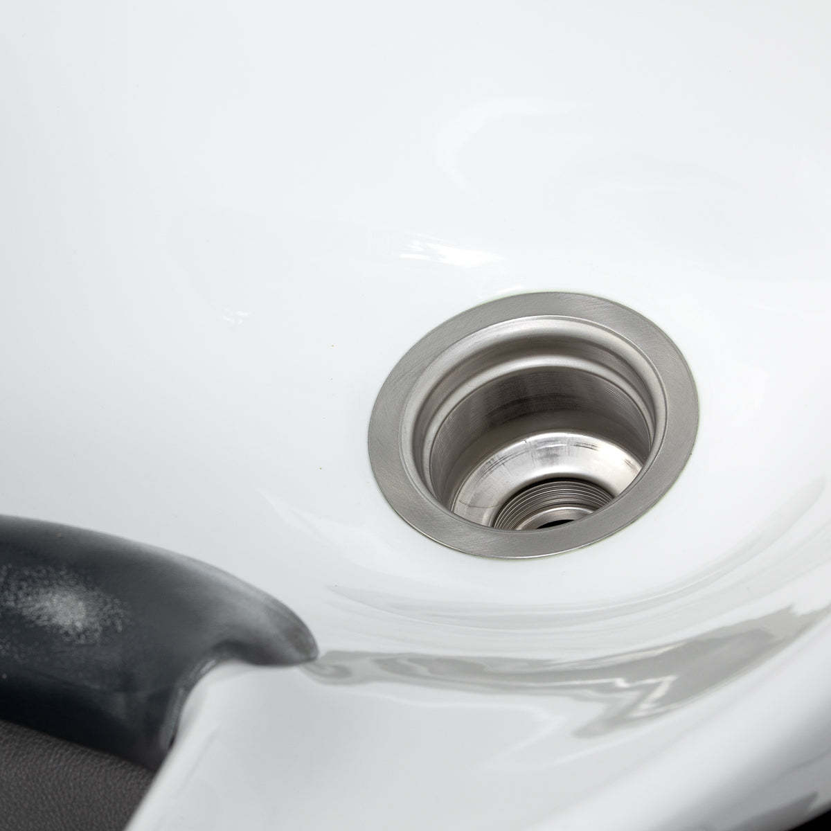 Sügav keraamiline kauss valge toonides vähendab tõhusalt vee ja protseduuride käigus kasutatavate preparaatide pritsimist. See soodustab mugavat ja täpset erinevate juuksuriteenuste teostamist. Kaussi liigutatav konstruktsioon võimaldab hõlpsalt reguleerida kaldenurka vastavalt individuaalsetele vajadustele. Kasutatud materjal on vastupidav, pleekimisele ja kriimustustele vastupidav ning lihtsasti puhastatav. Asjakohaselt profiilitud krae tagab mugava pea toe pesemise ajal, samas kui mugav plastkate musta toonides kõrvaldab keraamilise pinna külmatunde.