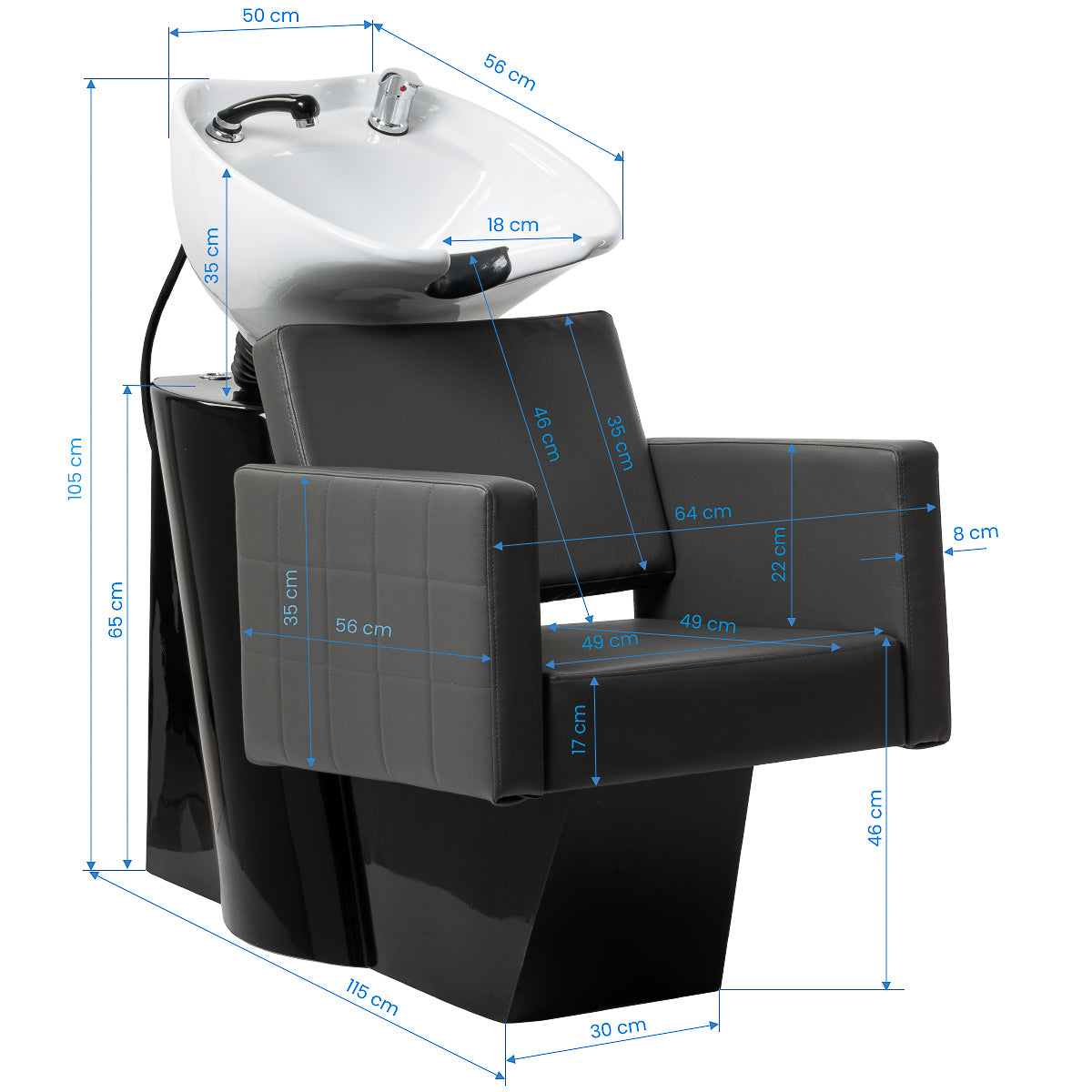 Stiilne Ankara juuksuripesuseade geomeetriliselt kujundatud tooliga toetab tõhusat juuksehoolduse ja pesu protseduuri teostamist. See on loodud juuksurisalongide funktsionaalse varustuse vajadusi silmas pidades. Integreeritud disain tagab mugavuse nii juuksurile kui kliendile ning hoolikas töötlus koos tõhusa külgõmblusega teeb sellest iga interjööri kaunistuse.
