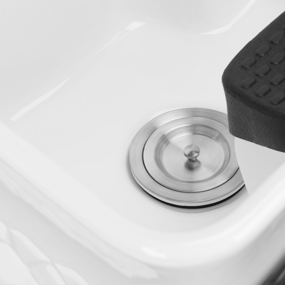 Kaasaegne Gabbiano juuksurisalongi autopesula ühendab funktsionaalsuse Itaalia elegantsiga. Autopesula on valmistatud kõrgeima kvaliteediga materjalidest ja viimistletud täiuslikult. Me teame, kui oluline on kliendi mugavus protseduuride ajal, mistõttu pakub eriline disain kliendile kindlat peatoetust pesemise ajal. Pehme ja äärmiselt mugav iste on kaetud kvaliteetse halli ökoloogilise nahaga. Autopesulal on valge keraamiline kauss ja kuldsed käetoed. Täiuslik mööbliese kaasaegsetele interjööridele.