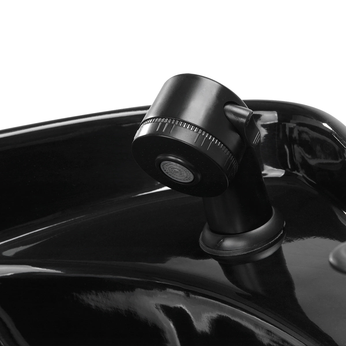 Must keraamiline kraanikauss sobiva sügavusega takistab vee ja protseduuri käigus kasutatavate toodete liigset pritsimist, võimaldades mugavalt teostada laia teenuste valikut. Kausi nurga reguleerimise võimalus võimaldab seadistust kohandada individuaalsetele vajadustele. Kasutatud materjal muudab kraanikausi vastupidavaks, plekikindlaks, kriimustuskindlaks ja väga lihtsasti puhastatavaks. Õigesti profiilitud kaelus pakub tuge ja mugavust juuste pesemisel ning mugava plastkattega ei tunne klient ebameeldivust külma keraamilise pinna tõttu.
