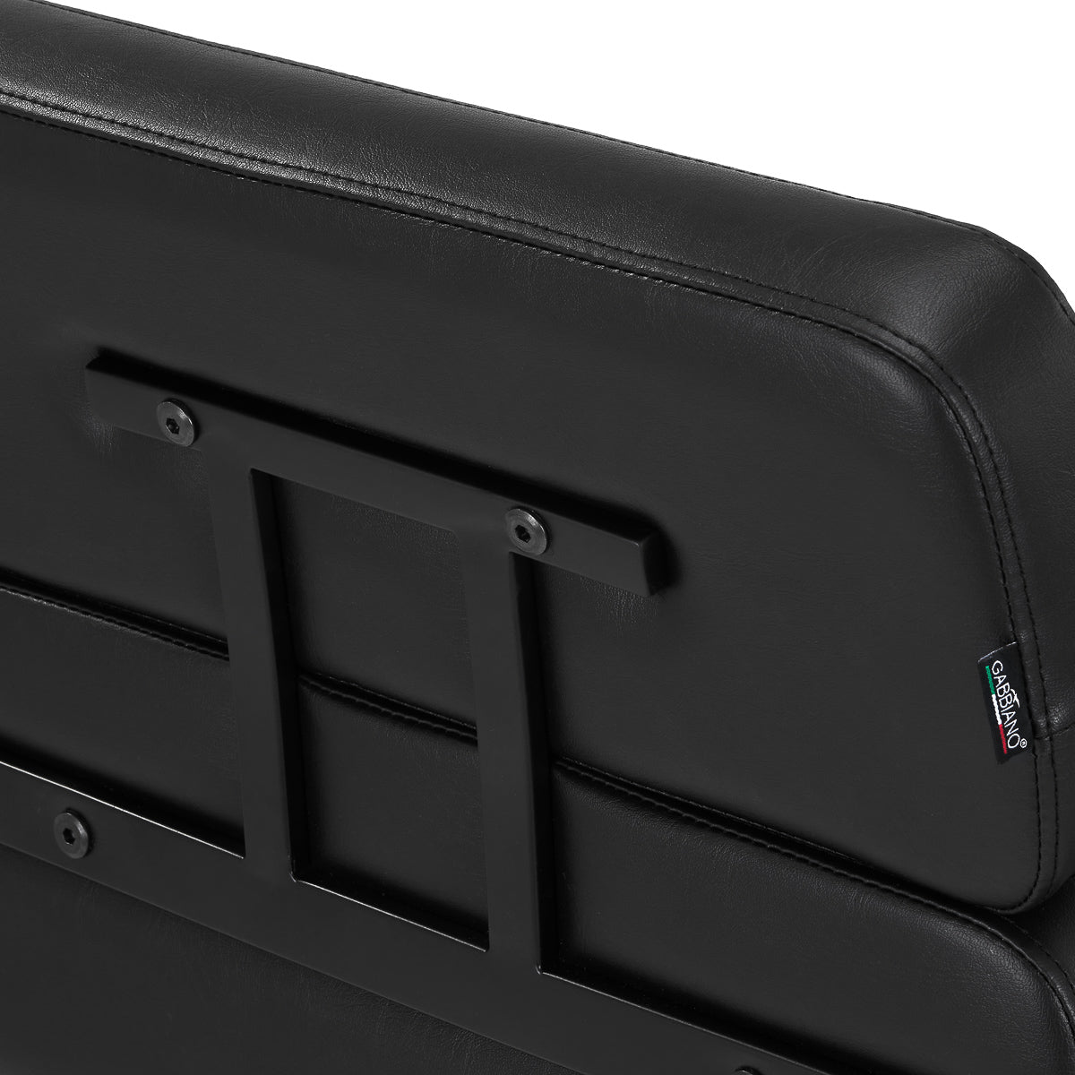 Vastupidavast, deformeerumiskindlast vahust täidis ja meeldiva puudutusega sünteetilisest nahast polsterdus tagavad mööbli vastupidavuse ja mugava kasutamise pikaks ajaks. See muudab varustuse ka niiskuskindlaks, vastupidavaks ja lihtsasti puhastatavaks. Must kate annab sellele ainulaadse iseloomu. Varustus on eristuv kaasaegse disainiga, mis teeb tugitooli suurepäraseks paljudes professionaalsetes salongides.