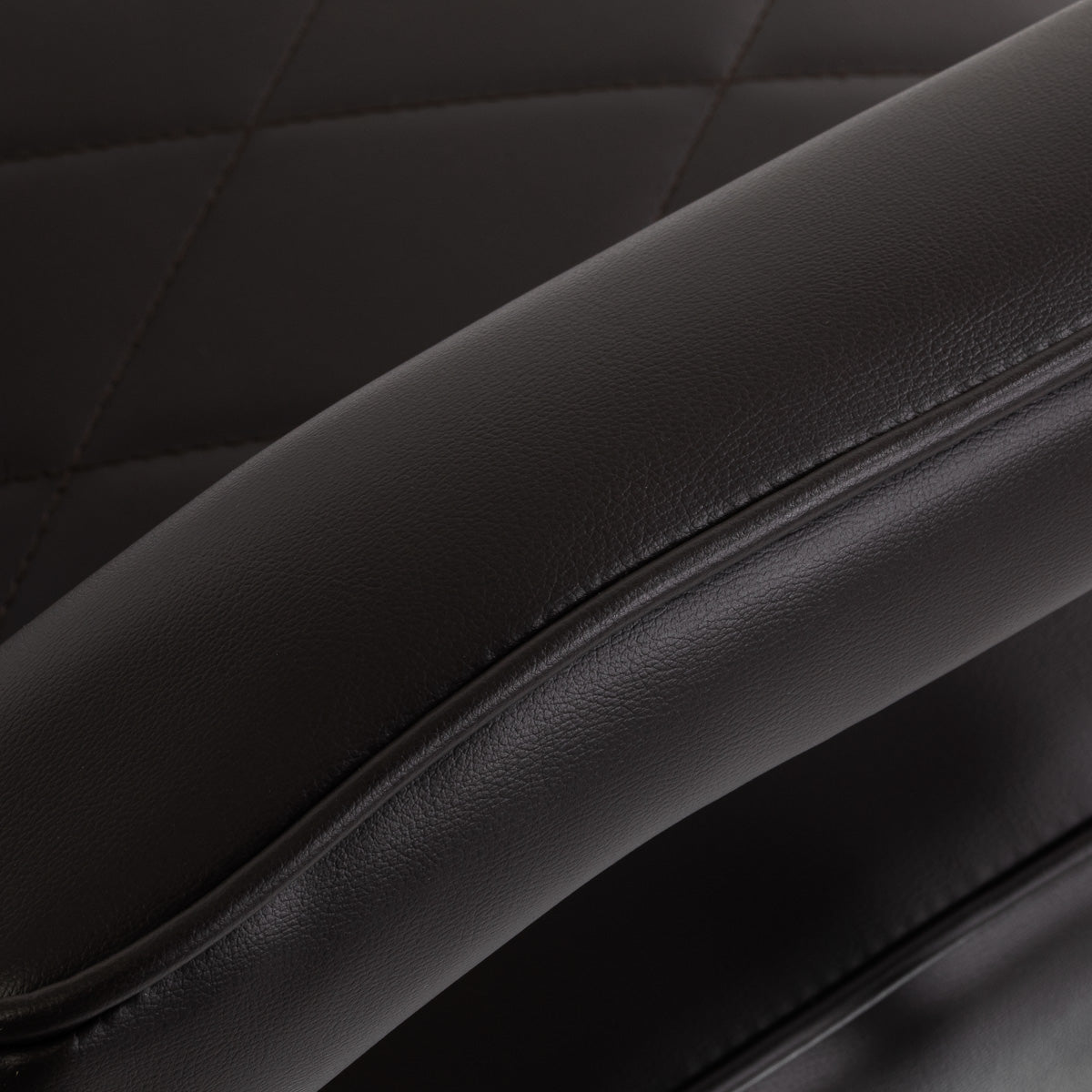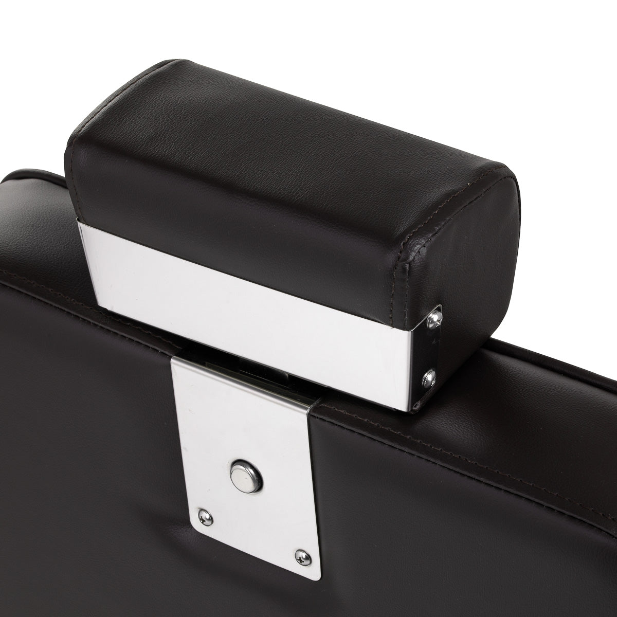 Tooli tugev ümmargune alusstruktuur tagab stabiilsuse ja suurepärase kasutajamugavuse. Istme täidis, mis on valmistatud deformatsioonikindlast vahust, ja pehme puudutusega sünteetilisest nahast mattviimistlusega polsterdus tagavad pikaajalise vastupidavuse ja mugavuse pikaajalisel kasutamisel. Stiilsed õmblused polsterdusel lisavad iseloomu, tuues meelde autode disaini inspiratsiooni, mis suurendab selle elegantset välimust. See omadus muudab tooli ka niiskuskindlaks, vastupidavaks ja kergesti puhastatavaks. Polsterdus pruunides toonides annab toolile ainulaadse iseloomu ning selle minimalistlik stiil võimaldab sel sujuvalt sulanduda iga habemeajamiskoha sisekujundusega.