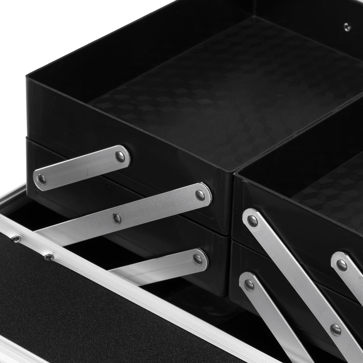 Elegantne kosmeetikakott 44 on funktsionaalsuse ja stiili kombinatsioon, mis tagab mugava organiseerimise, ohutu hoiustamise ja kiire juurdepääsu olulistele tööriistadele. See sobib ideaalselt igapäevaseks kasutamiseks, eriti mobiilsetele stilistidele. Ruumikas sisemus koos välja tõmmatavate riiulitega võimaldab aksessuaare organiseerida ning avar kamber mahutab küünetrelli, preparaadid või muud vajalikud tööriistad.