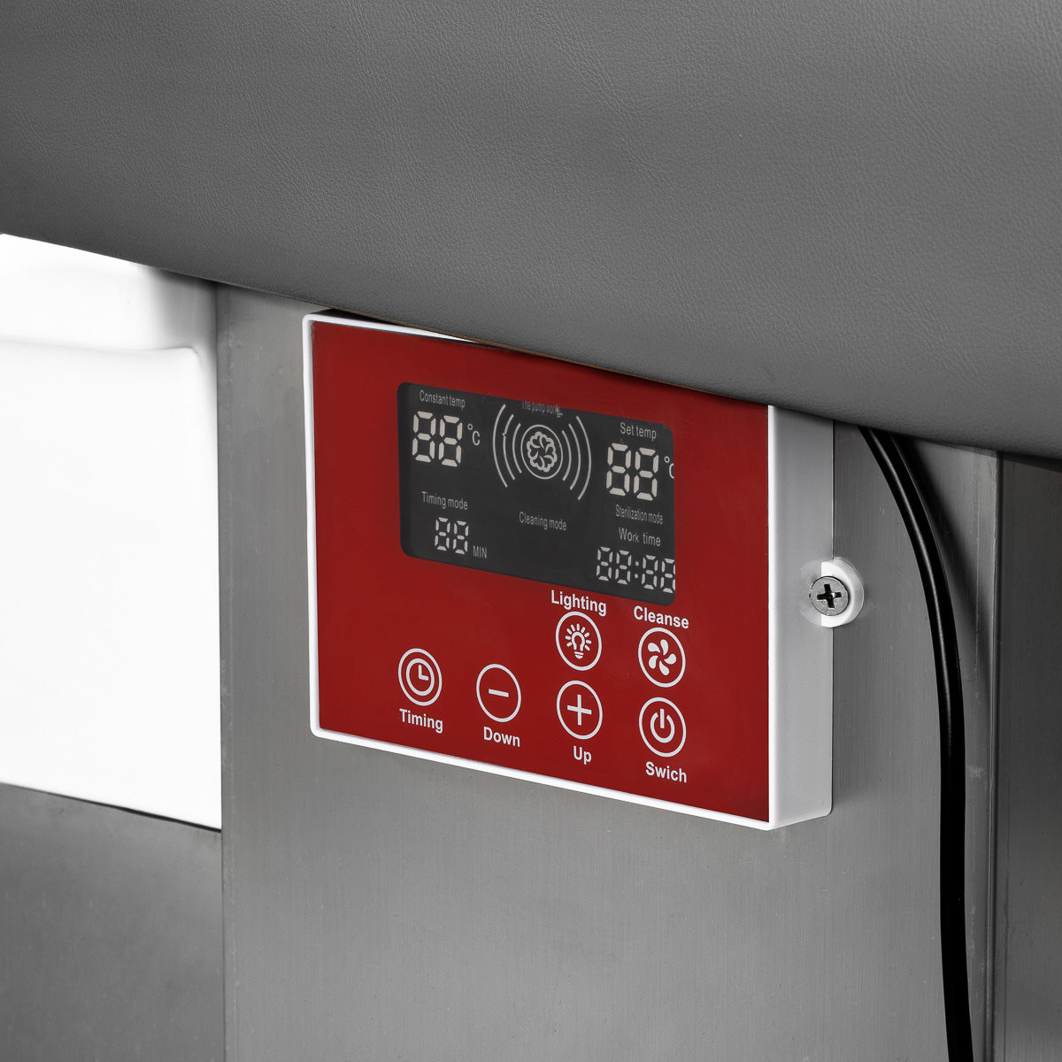 Intuitiivne puutepaneel võimaldab täielikku kontrolli pesuseadme funktsioonide üle. See võimaldab reguleerida tööaega ja vee temperatuuri ning jälgida nende hetkeväärtusi. Tänu integreeritud ekraanile saab igal ajal kontrollida, kui kaua seade on töötanud. Paneel võimaldab ka valgusravi funktsiooni aktiveerimist, st kausi valgustamist, luues lõõgastuse ja luksuse atmosfääri. Lisaks on auruteraapia seade varustatud kaugjuhtimispuldiga, mis võimaldab mugavat kaugjuhtimist.