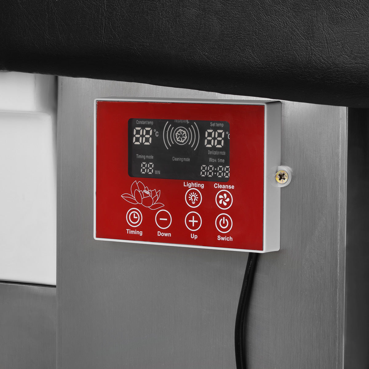 Intuitiivne puutepaneel võimaldab täielikku kontrolli pesuseadme funktsioonide üle. See võimaldab reguleerida tööaega ja vee temperatuuri ning jälgida nende hetkeväärtusi. Tänu sisseehitatud ekraanile saab igal ajal kontrollida seadme töö kestust. Paneel võimaldab ka valgusravi funktsiooni aktiveerimist, st kausi valgustamist, luues lõõgastuse ja luksuse atmosfääri. Lisaks on auruteraapia seade varustatud kaugjuhtimispuldiga, mis võimaldab mugavat kaugjuhtimist.