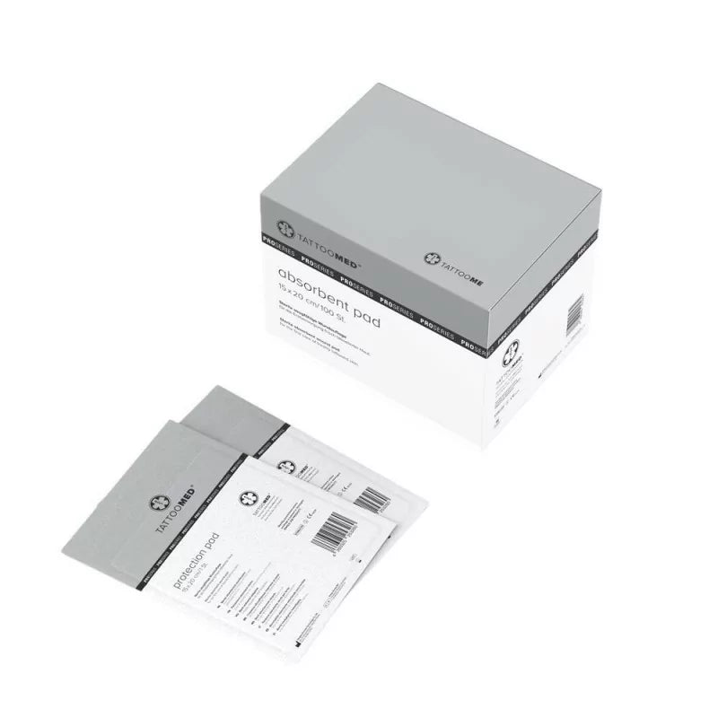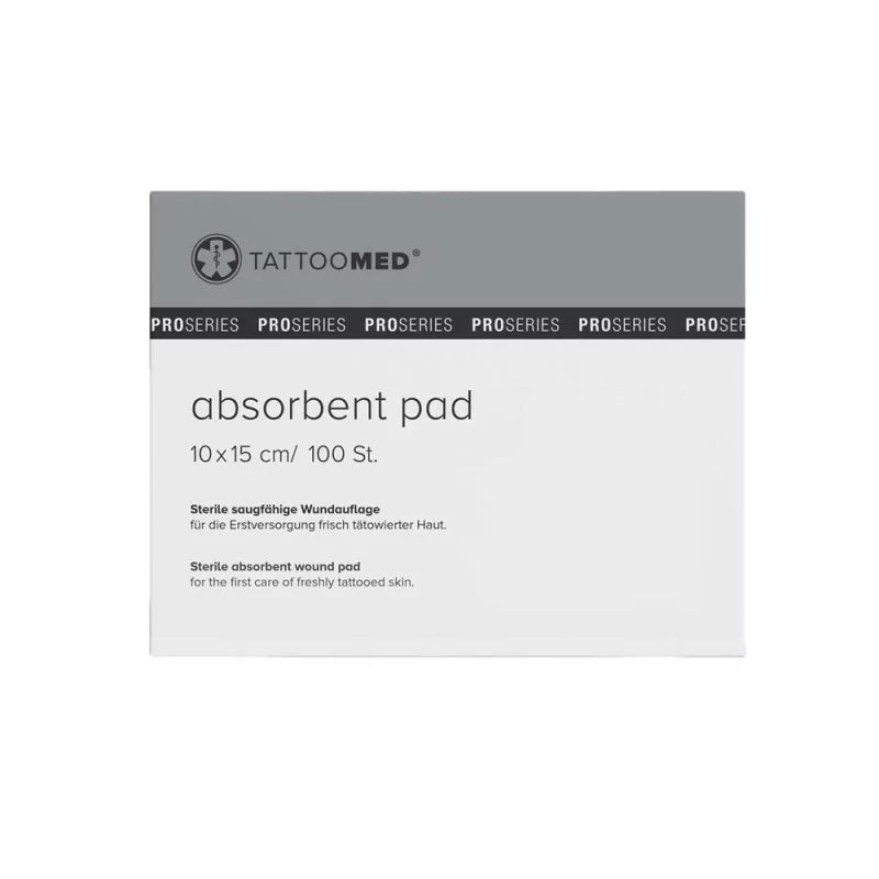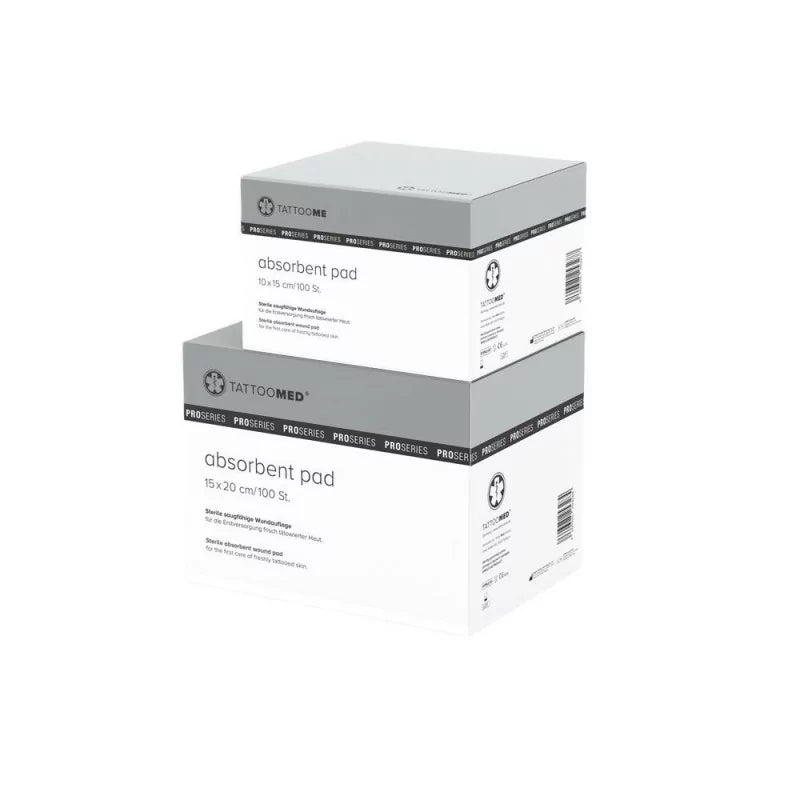 TattooMed imav padjake on professionaalne, steriilne haavaside, mis on mõeldud värskelt tätoveeritud naha olulise esmase hoolduse jaoks. Saadaval suurustes 10x15cm või 15x20cm, sisaldab iga pakend 100 väga imavat padjakest, muutes selle ideaalseks stuudiotele ja järelhoolduseks.