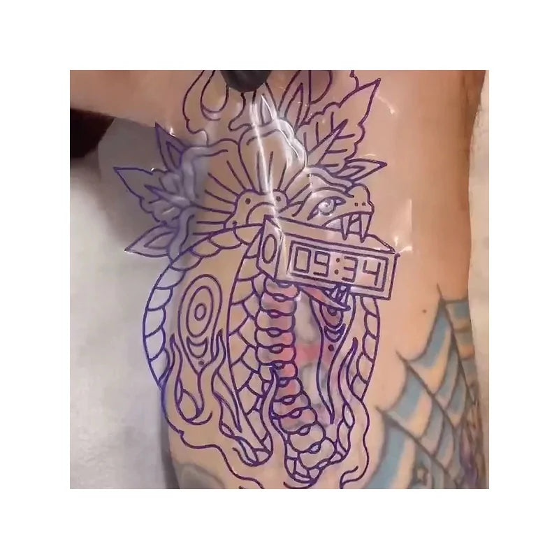 See uuenduslik läbipaistev šabloonipaber on eriti väärtuslik katmiseks, uute kujunduste sulandamiseks olemasolevatesse tätoveeringutesse ning töötamiseks kitsastes või keerulistes piirkondades. Läbipaistev foolium võimaldab teil šablooni enesekindlalt paigutada, tagades, et teie uus kunstiteos sobitub esimesel katsel sujuvalt varasemate töödega.