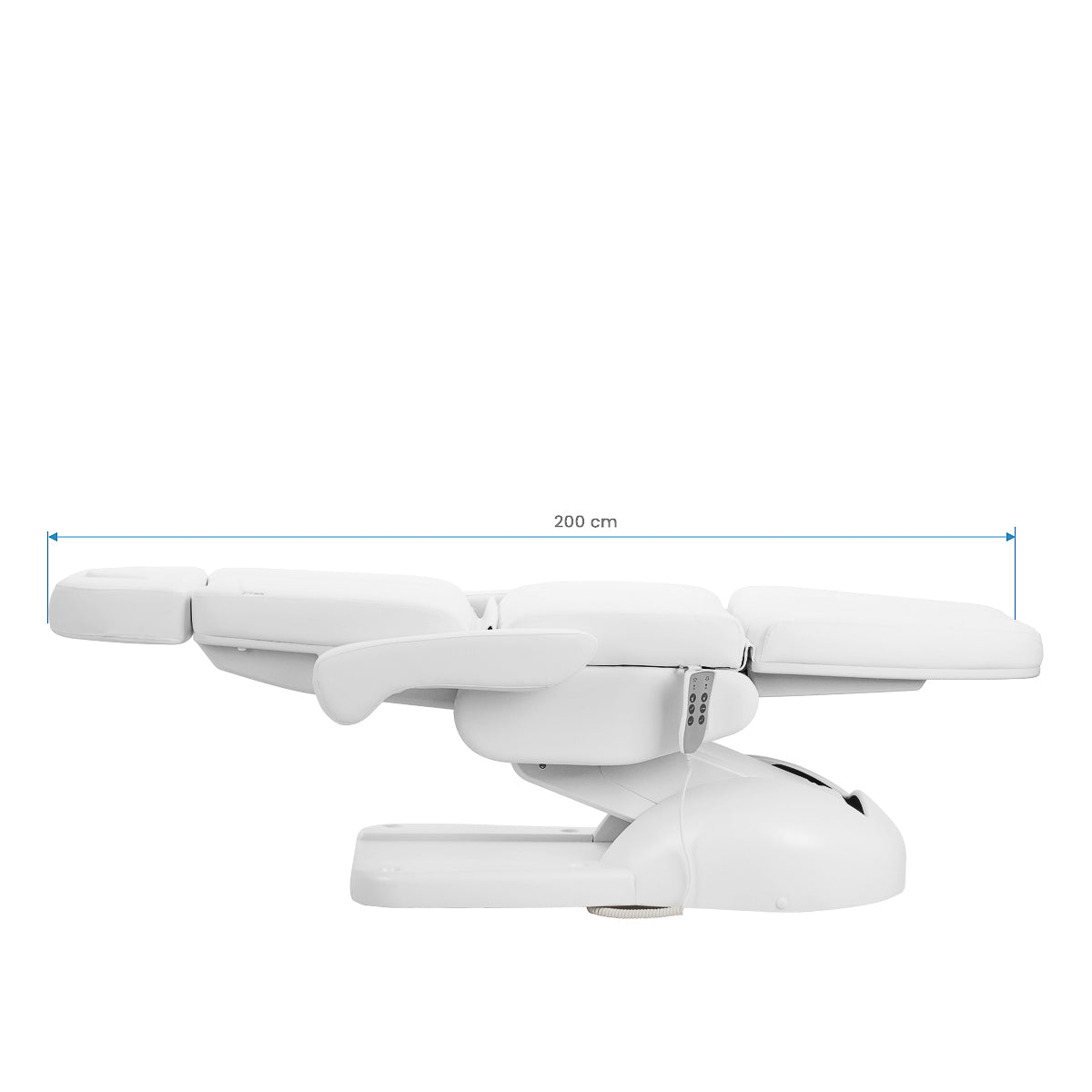 Azzurro Lux elektriline kosmeetiline tool on varustatud 3 ajamiga, mida juhitakse juhtmega puldiga, võimaldades sujuvat ja täpset üksikute elementide reguleerimist. See paistab silma stabiilsuse ja mitmekülgsuse poolest, muutes selle ideaalseks iluteenuste, podiatria ja esteetilise meditsiini kabinetides. Intuitiivne kasutamine ja lai reguleerimisvõimaluste valik võimaldavad tooli hõlpsalt kohandada nii kliendi kui ka spetsialisti vajadustele.