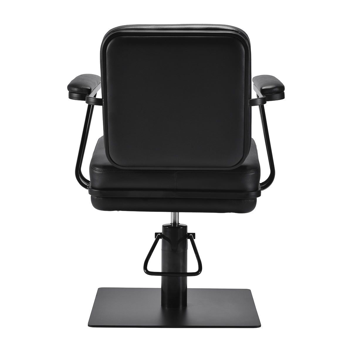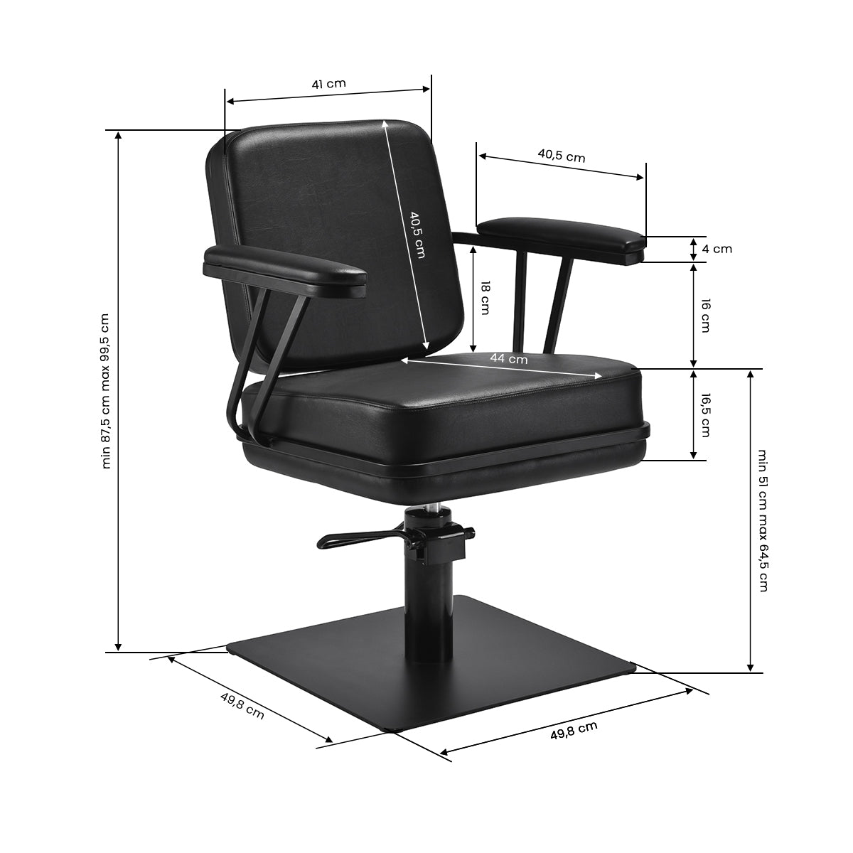 Profiilne tool tagab nimmetoe ja kõrge kasutusmugavuse, samal ajal kui polsterdatud käetoed võimaldavad kliendi õlgade õiget asendit. Stabiilne, ruudukujuline alus mattmustas toonis tõstab esile stiilse välimuse ning meeldiv puudutus sünteetilisest nahast mustades toonides tagab mugavuse pikkade protseduuride ajal, vastupidavuse, niiskuskindluse ja lihtsa puhastamise. Kaasaegne kujundus annab ruumile unikaalse iseloomu ning tool sobib hästi nii moodsatesse kui ka klassikalistesse sisustustesse, rõhutades salongi professionaalset mainet.