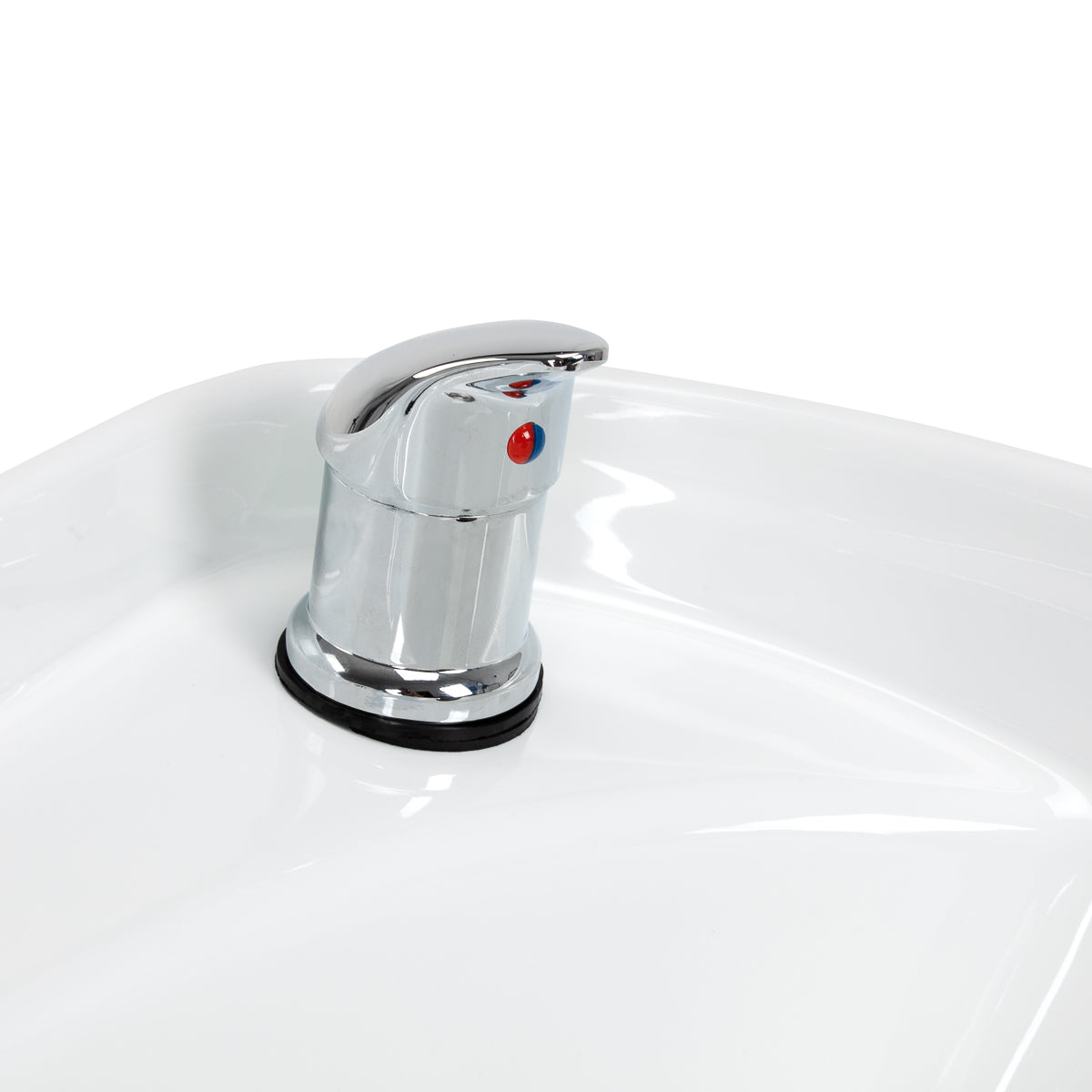 Valgetes toonides keraamilise pesuvalamu kausi sügavus võimaldab mugavalt ja tõhusalt teostada laia valikut juuksuriteenuseid, vältides vee ja protseduuri käigus kasutatavate toodete liigset pritsimist. Kasutatud materjal muudab pesuvalamu vastupidavaks, pleekimise ja kriimustuste suhtes resistentseks ning väga lihtsaks puhastada. Sobivalt profiilitud ääris ja kaldu seljatugi pakuvad toetust ja mugavust juuste pesemisel ning tänu mugavale musta tooni plastkattele ei tunne klient külma keraamilist pinda ebamugavana.