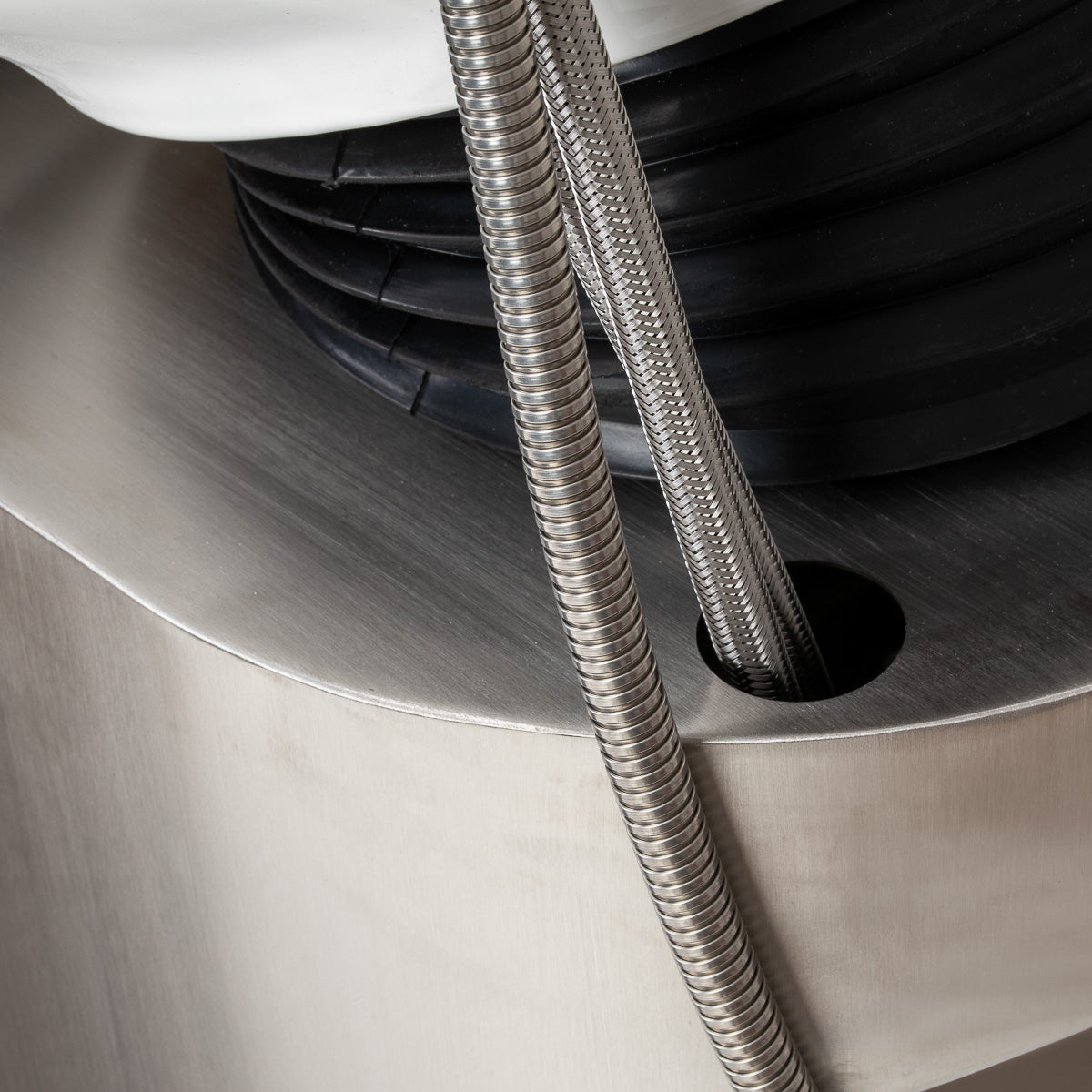 Pesujaam on varustatud segistiga, mis tagab pideva juurdepääsu kuumale ja külmale veele. See võimaldab temperatuuri hõlpsalt kohandada kliendi eelistustele. Käepideme riputamiseks mõeldud spetsiaalne koht teeb töö lihtsamaks ning kroomitud pistik spetsiaalse filtriga võimaldab kontrollida vee voolu ja hoida salongi kõrgeid hügieenistandardeid. Veeliitmik asub pesuvalamu all asuva samba sees, mis tõhusalt peidab kõik torud, samas kui kergesti eemaldatav paneel tagab vajadusel mugava ligipääsu. Tool on profiilitud, et tagada mugavus erinevate protseduuride ajal, ning jalatugi tagab suurepärase jala toe. Funktsionaalsuse ja mugavuste kombinatsioon muudab töö juuksurisalongis veelgi mugavamaks.