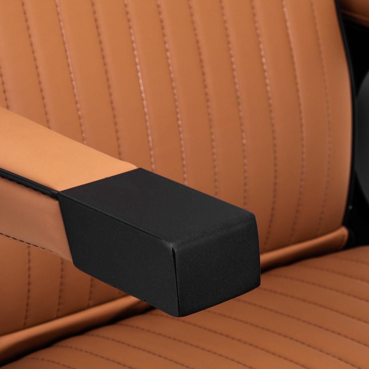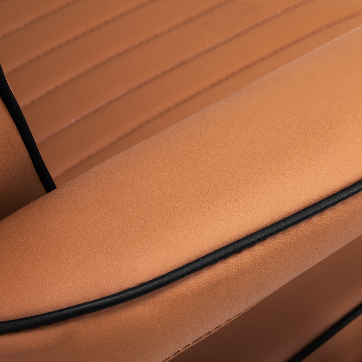 Tugev jalakonstruktsioon tagab stabiilsuse ja kõrge mugavuse. Iste on täidetud deformatsioonikindla vahuga ja polsterdatud pehme, mati sünteetilise nahaga, ühendades vastupidavuse mugavusega. Viimistluseks kasutatud materjalid on niiskuskindlad, vastupidavad ja kergesti puhastatavad, muutes tooli ideaalseks igapäevaseks kasutamiseks. Stiilsed õmblused ja pruunide toonide polster annavad sellele unikaalse iseloomu, sobitudes suurepäraselt kaasaegsete juuksurisalongide sisekujundusega.