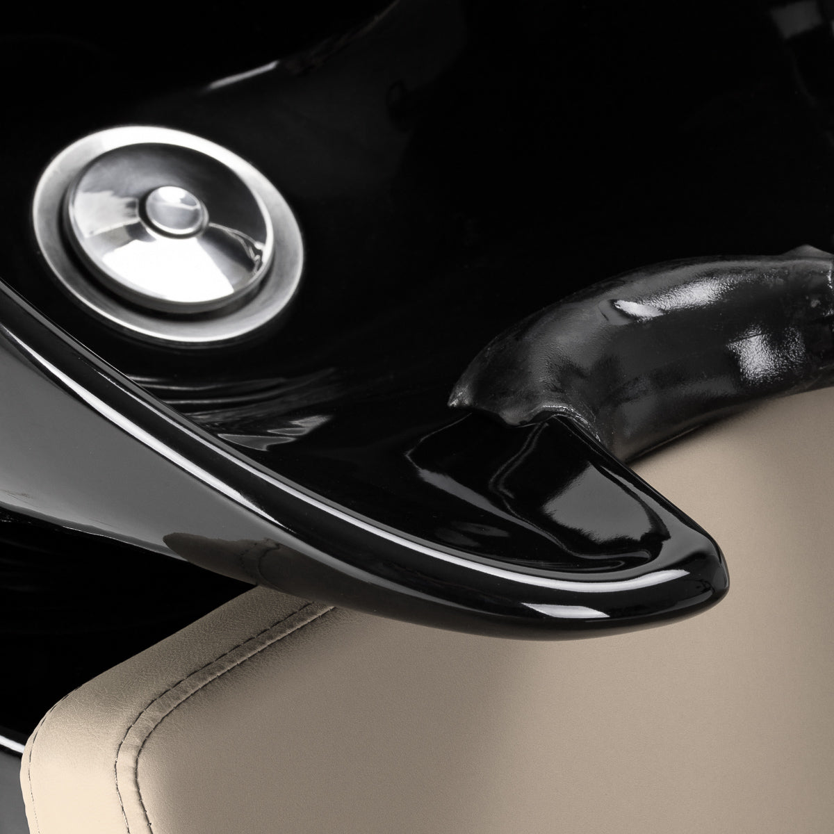 Sügav keraamiline kauss musta tooni varjundites vähendab vee ja kosmeetika pritsimist protseduuride ajal. Kausi reguleeritav nurk võimaldab täpset kohandamist vastavalt kliendi vajadustele. Vastupidavast materjalist valmistatud kauss on värvimuutustele, kriimustustele ja kemikaalidele vastupidav ning selle sile pind teeb puhastamise lihtsaks. Ergonoomiliselt kujundatud kaelus pakub mugavat peatuge ning must plastikust kate kõrvaldab keraamikuga kokkupuutel tekkiva külmatunde.