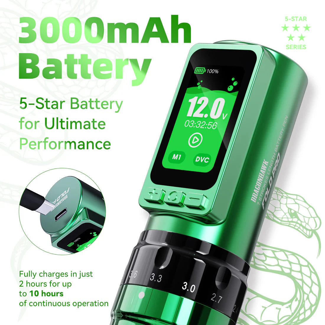 Tänu arenenud Mcore-C3 mootorile pakub Dragonhawk Fold Pro Year of Snake Edition sujuvat ja ühtlast jõudlust koos erakordse vastupidavusega. See mootor on loodud libisema kergelt läbi kõikide nahatüüpide, sealhulgas paksema naha, tagades nõela tasakaalustatud tungimise ja usaldusväärse tindiküllastuse igas sessioonis.