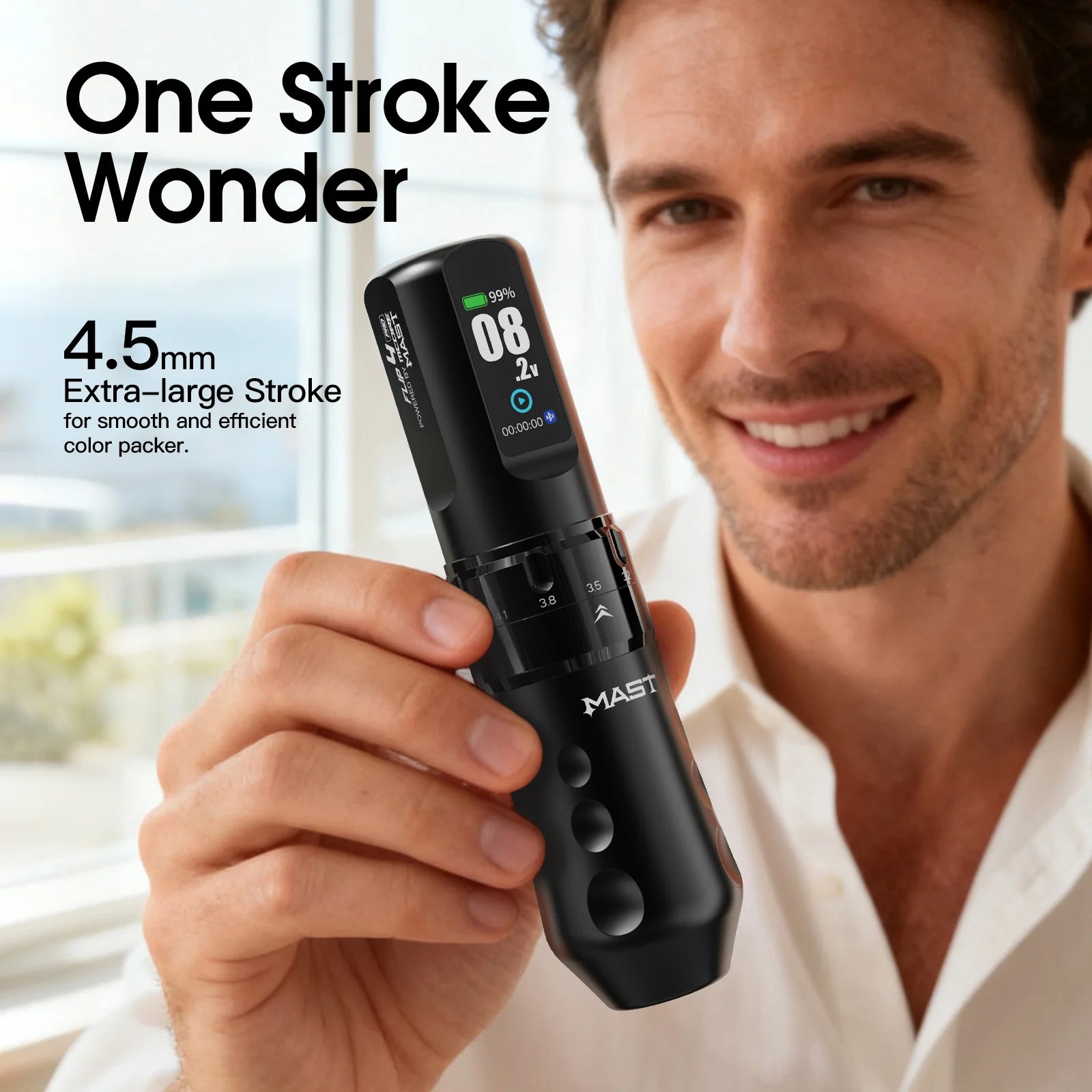Mast Flip 4 Pro traadita tätoveerimismasin on mõeldud kunstnikele, kes vajavad maksimaalset jõudu, kohanemisvõimet ja kontrolli nii joonistamisel, varjutamisel kui ka värvi täitmisel. Tänu 7 tõelisele löögipikkuse valikule vahemikus 2,5 mm kuni 4,5 mm saavad kunstnikud löögipikkust täpselt reguleerida täpsusnupu abil, muutes Flip 4 Pro tõeliseks kõigi stiilide tätoveerimislahenduseks.